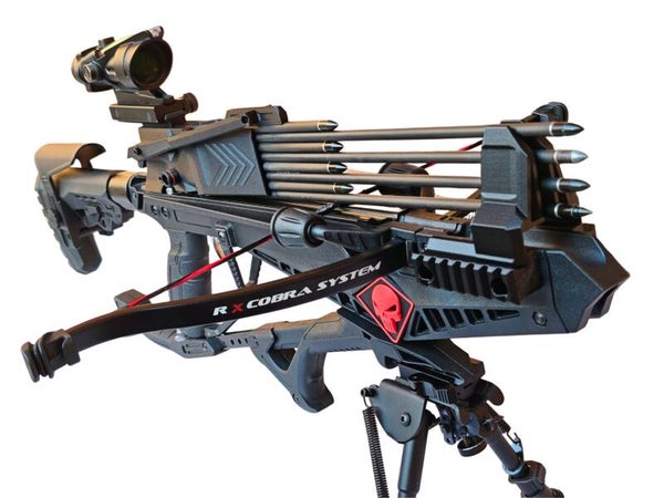 Das 7 Bolt Mag für die Adder hat eine Kapazität von 7 7,5 bis zu 15 Zoll Bolzen. Und verfügt über eine im Winkel verstellbare Picatinny.