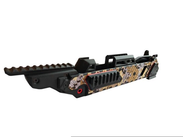 Integrierte, verstellbare Picatinny-Schiene: Absolute Präzision auf jede Distanz. Durch die integrierte Höhenverstellung (Elevation) gleichst du den Bolzenabfall perfekt aus, ohne dein Visier am Limit zu betreiben.